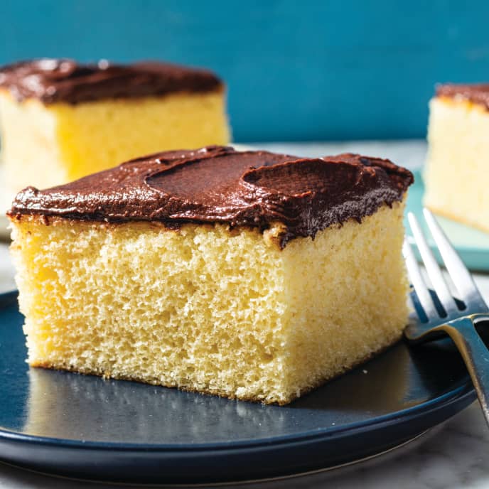 Yellow Sheet Cake With Chocolate Frosting America S Test Kitchen Recipe